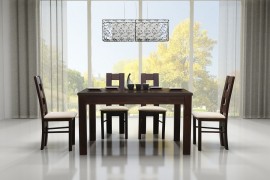 Blat stołu wykonany jest z płyty MDF pokrytej fornirem (okleina naturalna) polakierowany lakierami wodnymi, nogi wraz ze skrzynią stołu drewno bukowe , polakierowany lakierami wodnymi.