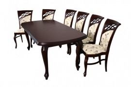 Zestaw Stół Cezar blat stółu frez ozdobny noga ludwik gruby. Stół rozkłada sie z 180 cm do dyspozycji są dwie wkładki po 50 cm gdzie daje nam wielkośc 280 cm. Blat fornirowany noga drewniana. Mozliwa zmiana frezu blatu i nóg.