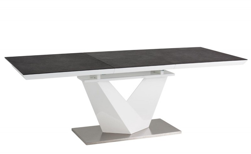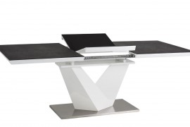 Ponadto model stołu Alaras II wyróżnia się niezmiernie funkcjonalną konstrukcją, którą zawdzięcza możliwości rozłożenia blatu i tym samym powiększenia wielkości całości bryły. Rozwiązanie to okaże się szczególnie przydatne podczas rodzinnych spotkań i wizyt gości. Blat stołu wykonano z połączenia szkła hartowanego i MDF-u, natomiast podstawa ze stali szczotkowanej i MDF-u.