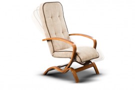 Wygodny fotel na giętym stelażu z regulowaną pozycją oparcia. Zastosowano sprężynę falistą w siedzisku, sprężynę typu bonell i piankę tapicerską.