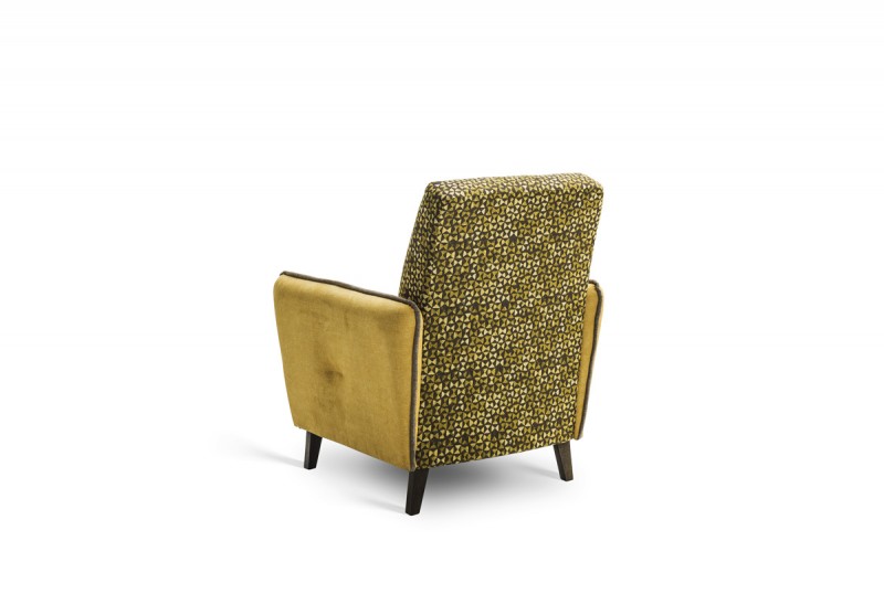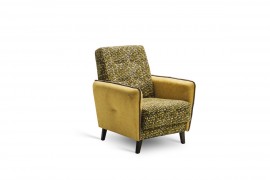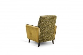 Fotel Dozza wyróżnia się prostym, nowoczesnym kształtem, który tworzy głębokie siedzisko połączone z wysokim oparciem oraz zabudowane wysokimi podłokietnikami. Mebel stoi na drewnianych nóżkach, które dodają bryle elegancji. Fotel doskonale zaprezentuje się w aranżacji z wersalką Dozza.