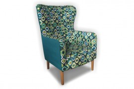 Fotel charakteryzujący się ponadczasowym designem, mebel bardzo wygodny i modny. Zastosowano konstrukcję bukową, sprężynę falistą, piankę poliuretanową, preszpan oraz pas tapicerski elastyczny.