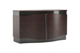 Komoda o frontach z litego drewna, w okleinie z czereśni amerykańskiej zachwyca połączeniem mebla klasycznego z nowoczesnością. Wykonane fale dodają kolekcji lekkości, natomiast wybarwienie venge z wstawkami w lśniącej lakierowanej czerni nadają szlachetności i elegancji. Mebel nadaje się do nowoczesnych jak i klasycznych wnętrz. Dwoje drzwiczek zapewnia łatwy dostęp i dobre wykorzystanie przestrzeni.