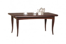 W żadnym pokoju dziennym nie może zabraknąć funkcjonalnej ławy. Model z kolekcji Afrodyta zachwyca nie tylko mocno inspirowaną stylem klasycznym formą, ale również zastosowaniem praktycznej funkcji rozkładania. Fornirowany blat osadzono na czterech subtelnie giętych, drewnianych nogach z litego drewna. Dzięki mechanizmowi rozsuwania szybko i łatwo zmienisz rozmiar stołu kiedy tylko zechcesz.