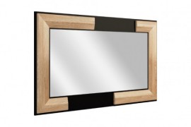 Fantastyczne lustro do sypialni, tworzące komplet z toaletką. Pozioma lustrzana tafla została osadzona w oryginalnej ramie z czarnego szkła Lacobel oraz litego drewna barwionego na dąb naturalny lub orzech. Całość pokryta przyjaznym dla użytkownika lakierem wodnym (z wyjątkiem powierzchni wymagających użycia innych rodzajów lakierów).