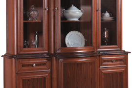 Komoda 3D2S „170” + Witryna 3D „170” – KOMODA Z WITRYNĄ, jest jednym z elementów kolekcji DIAMENT pozwalającym skomponować gustowne w stylu wnętrze. Komoda posiada troje drzwiczek, jedne półokrągłe umieszczone na środku i dwoje po bokach, nad którymi znajdują się szufladki. Witryna posiada troje przeszklonych drzwiczek, boczne proste i jedne półokrągłe ozdobione piaskowanym ornamentem. Całość pozwala na szykowną ekspozycję np. zastawy a dzięki pojemnej komodzie również na przechowywanie. Staranne wykonanie przy dbałości o najmniejsze detale sprawi, że wnętrze nabierze luksusu.