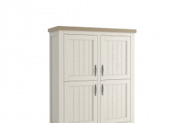 Meble z systemu Galia wykonane są z najwyższej jakości materiałów. Blat mebla w wykonany z płyty komórkowej pokrytej naturalną okleiną dębową z doklejkami litego drewna po brzegach, fronty malowany na biało MDF 22 mm. Korpus mebla wykonany z płyty komórkowej z ramką MDF. Prowadnice samodomykające w meblach z szufladami. Zawiasy puszkowe z funkcją cichy domyk, uchwyty metalowe.