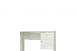 Biurko LB-1 wyposażone jest w jedną szufladę oraz jeno drzwiową szafkę. Dodatkowo posiada uchwyty metalowe w kolorze chrom połysk z białym środkiem. Biurko nada się idealnie do pracy z laptopem a jego stylistyka nada pomieszczeniu elegancji.