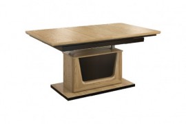 Ławostół rozsuwany III pneumatyczny z kolekcji Maganda wykonany z najwyższą starannością. Oparty na solidnej kolumnie wykonanej częściowo z litego drewna dębowego. Blat podnoszony za pomocą podnośnika pneumatycznego. Ławostół można zablokować na dowolnej wysokości. Po rozłożeniu zmieści się aż 10 osób.