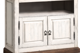 Jeśli cenisz klasyczne meble, ze szczyptą prowansalskiej finezji - szafka RTV Provance będzie dla Ciebie idealnym rozwiązaniem. Dzięki niej będziesz także bliżej natury. Rustykalny charakter mebla podkreślają jasne wybarwienia, które za pomocą specjalnej techniki zostały postarzone. Szafka w górnej części posiada otwartą wnękę na sprzęt RTV, pod którą znajduje się 2-drzwiowa szafka. Oprócz elegancko poprowadzonej linii stylistycznej szafka odznacza is wysoką trwałością. Starannie wyselekcjonowane drewno sosnowe to materiał, z którego powstają doskonałe meble mieszkaniowe. Wymiary wnęki: szer. 85 cm, wys. 36 cm