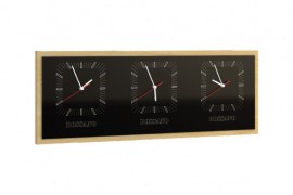 Funkcjonalne trzy zegary w jednym. W połączeniu z możliwością własnego indywidualnego graweru (najczęściej wybierane są nazwy miast np. NEW YORK – WOŹNIKI – TOKYO) nadaje pomieszczeniu oryginalnego i subtelnie prestiżowego wymiaru. Zegar wykończony naturalnym fornirem.