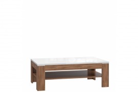- Wykonany został w ciepłym dekorze Dąb Sangallo. Biały, połyskujący blat doskonale komponuje się z całością