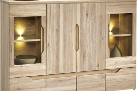 Komoda wysoka Selene stworzona przez markę Meble Krysiak przywodzi na myśl atrakcyjną nowoczesność i funkcjonalne rozwiązania. Prosta linia mebla z uchwytami w postaci wgłębienia prezentuje się bardzo modnie. Komoda Wysoka Selene ma mnóstwo wewnętrznej przestrzeni - podzielono ją na praktyczne szafki, szuflady oraz boczne witryny z oświetleniem, czyli miejsce idealne na ozdoby. Intrygującą cechą mebla jest też widoczny zarys usłojenia, które przyciągnie wzrok każdego gościa. O wysoką trwałość komody dbają naturalne materiały, z jakich została wykonana.