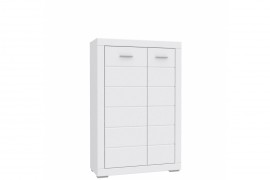 Szafka w kolorze białym idealnie wpisze się w każde wnętrze. Prosty kształt mebla został otoczony pogrubioną ramą, a fronty ozdobione poziomymi frezowaniami. Biel świetnie komponuje się ze wszystkimi kolorami, co daje nieskończone możliwości w tworzeniu własnych aranżacji. Srebrne, metalowe uchwyty i nóżki idealnie komponują się z białą stylistyką mebla.