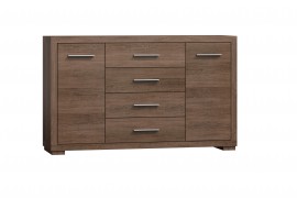 Komoda element mebli systemowych Vegas w dwóch wersjach kolorystycznych korpusów i frontów. Dzięki masywnym elementom, komoda ma bardzo stabilną i trwałą konstrukcje, wspaniale prezentuje się w sypialni, jak i również będzie stanowić ozdobę każdego salonu lub przedpokoju. Meble są wykonane są z wysokogatunkowej płyty laminowanej z obrzeżami ABS, co zapewni ich trwałość. Pogrubiony na brzegach korpus mebli nadaje im masywnego i niepowtarzalnego charakteru.