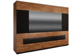 Największy wariant szafy z kolekcji Verano, czyli model V, to pięć segmentów składających się na ogromną przestrzeń do zagospodarowania. Trzy środkowe są zdobione powierzchnią pokrytą czarnym, półmatowym lakierem. Dwa zewnętrzne – obiciami z wysokiej jakości materiału. Szerokość szafy Verano V to 285 cm.