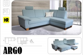 Narożnik Argo wyposarzony jest w pojemnik na pościel, system rozkładania typu delfinek. Naroznik posiada wysokie oparcie plus zagłówki pod głowe dla wyzszych osób w narozniku zastosowano sprężyny faliste + pianka HR