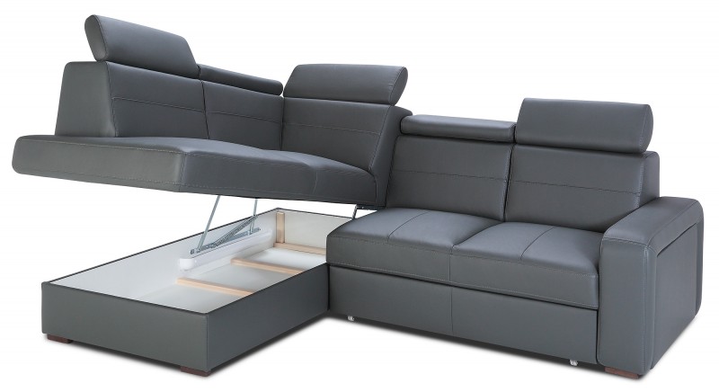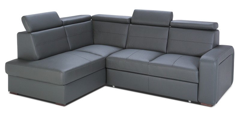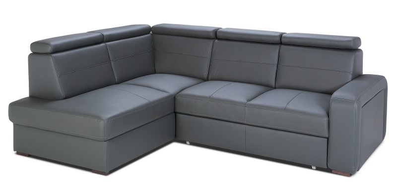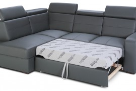 Basic to nowoczesny narożnik o prostej formie. Jego nietypowa stylistyka sprawia, że bardzo dobrze prezentuje się jako centralna część salonu. Świetnie sprawdzi się w małym mieszkaniu w bloku jak i salonie o dużej powierzchni. Wykonany z najwyższej jakości pianki wysoko elastycznej HR na sprężynach bonell i sprężynach falistych. W jego oparciu zastosowano kulki sylikonowe przez co zapewnia on najwyższy komfort wypoczynku i użytkowania.Jest to narożnik z funkcją spania i pojemnikiem na pościel. To ogromna zaleta wypoczynku, ponieważ w dzień może on być miejscem do spędzania wolnego czasu zaś w nocy może służyć jako łóżko. Narożnik spełni oczekiwania najbardziej wymagającego klienta. Dodatkowo, dostępny jest w skórze jak i tkaninie.