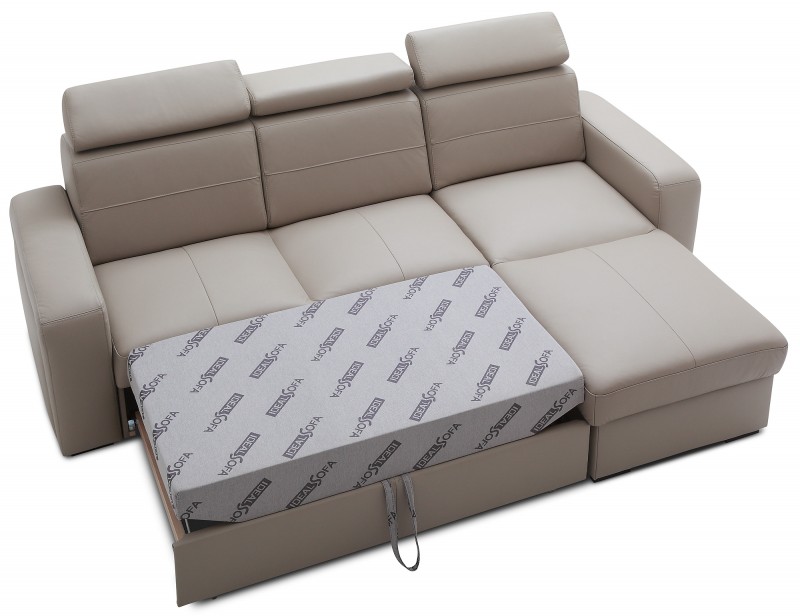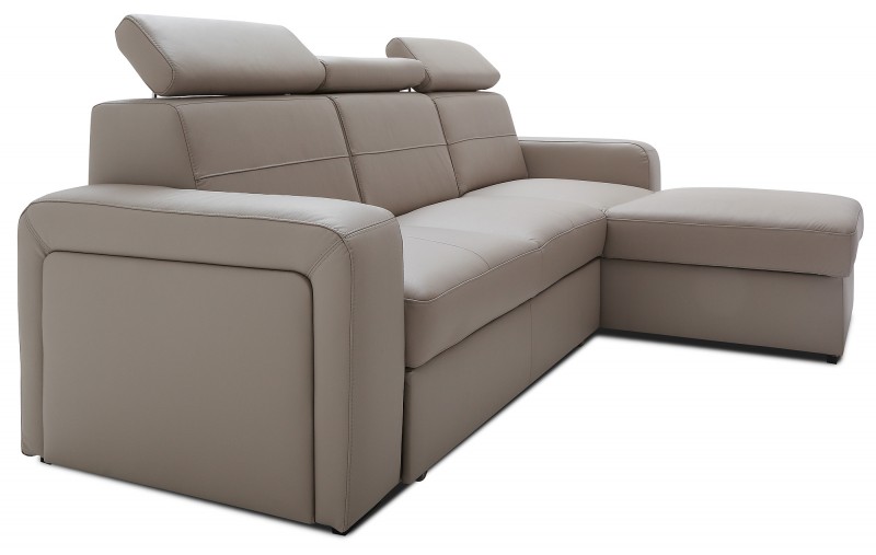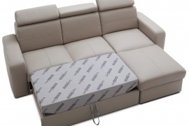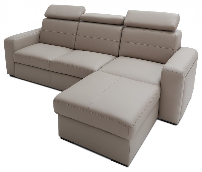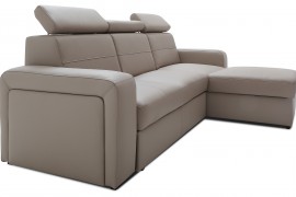 Model ten jest idealnym wyborem do nowoczesnych i stylowych salonów. Pokochają go zwłaszcza Ci z Państwa, którzy lubią prostą formę i geometryczne kształty. Narożnik może stworzyć niesamowitą aranżację w salonie, jak i doskonale spełniać rolę mebla sypialnianego, gdyż posiada duży pojemnik na pościel. Jego design pozwala na wiele możliwości.Klient ma możliwość wyboru spośród dziesięciu wybarwień skóry i tapicerek, jak i rodzaju i kolorystyki nóżek, dzięki czemu można go dopasować do własnego gustu lub potrzeb. Warto również zwrócić uwagę na regulowane zagłówki. Można je odpowiednio dopasować do sylwetki, dzięki czemu czas relaksu spędzony na narożniku jest niezwykle komfortowy.