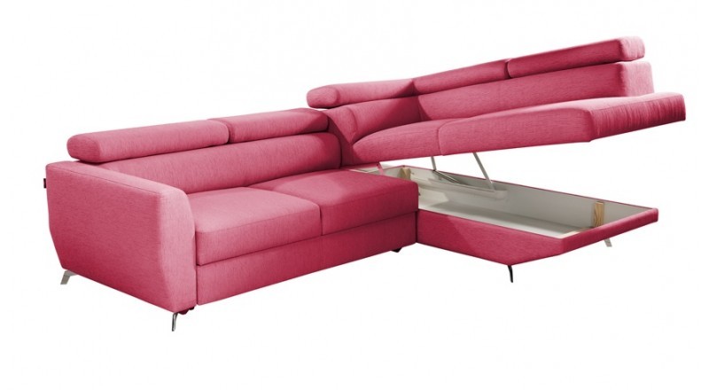 Mebel jest bardzo komfortowy - w siedzisku zastosowane są pianki HR i system sprężyn, zagłówki są regulowane, wyposażone we włoskie mechanizmy MOTION ITALIA. COMEZO posiada również wygodną funkcję spania i duży pojemnik na pościel.