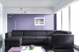 Przestronny, niezwykle atrakcyjny, piękny narożnik, to projekt, od którego trudno oderwać wzrok. Wyjątkowo komfortowy materiał obiciowy - przyjemny w dotyku i nadający przytulności aranżacji, zachwyca głęboką czernią i niezwykłą wyrazistością.