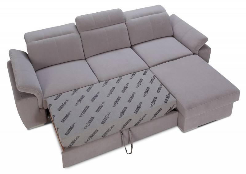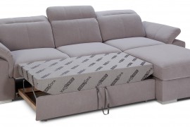 Narożnik w łatwy sposób rozkłada się do powierzchni spania 210 x 125 cm. W wysuwanym wózku przeznaczonym do spania istnieje możliwość zastosowania sprężyn bonellowych (dopłata).