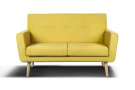 Nierozkładana sofa trzyosobowa charakteryzująca się skandynawskim stylem. Zastosowano konstrukcję bukowo-sosnową, płytę wiórową surową, sprężynę falistą, preszpan, piankę poliuretanową oraz pas tapicerski elastyczny.