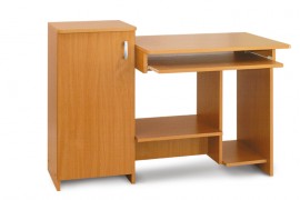 Biurko K8, które jest idealne do małych i dużych pomieszczeń.To produkt wykonany z bardzo wysokiej jakości materiałów.Posiada miejsce na komputer, dużą pojemną szafkę, która w środku posiada dwie półki, wysuwany blat na klawiaturę oraz dolną półkę np na drukarkę.