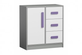 Komoda GIT 7 – komoda z zamykaną szafką po lewej stronie oraz pojemnymi szufladami po prawej. Meble GIT posiadają korpusy w kolorze antracyt, białe fronty oraz uchwyty w kilku kolorach do wyboru. Komoda GIT 7 dostarczana jest w paczkach do samodzielnego montażu wraz z instrukcją i akcesoriami.