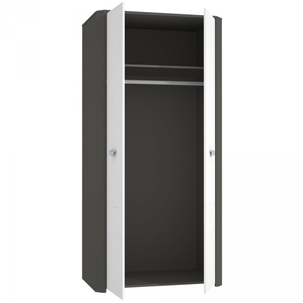 Nowocześnie zaaranżowany pokój młodzieżowy wymaga użycia funkcjonalnych elementów, które pomieszczą nieograniczoną ilość dziecięcych rzeczy. Szafa 2-drzwiowa Hey marki Forte wyposażona jest w funkcjonalny drążek na wieszaki oraz górną półkę. Dolną część mebla można wykorzystać na pudełka z akcesoriami, obuwie lub kolekcję zabawek. Dzięki prostej lini przełamanej oryginalnie ściętymi krawędziami oraz lekko zaokrąglonymi uchwytami szafa wygląda innowacyjnie. Również kolorystyka mebla nawiązuje do aktualnych trendów. Odcienie szarości zestawione z subtelną bielą ładnie się przenikają, eksponując nowoczesny charakter mebla. Szafa Hey daje pewność nowoczesnego wnętrza z pomysłem!