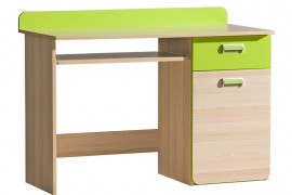 Nowoczesne biurko Lorento L10, wyposażone w szufladę, zamykaną szafkę oraz funkcjonalną półkę umieszczoną pod blatem. System Lorento wyróżnia się owalnymi kształtami frontów. Daje wiele możliwości na aranżację każdego pokoju. Dostępny w dwóch kolorach: fiolecie i w zieleni.