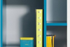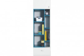Chcesz spełnić marzenie swojego dziecka o nowocześnie zaaranżowanym pokoju? Wprowadź do wnętrza modny i funkcjonalny regał Mobi marki Meblar. Regał składa się z zamykanej szafki oraz 2 pakownych szuflad. W środkowej części znajduje się otwarta przestrzeń podzielona półeczkami na mniejsze części. Uwagę zwraca ciekawa kolorystyka. Połączenie bieli z intensywnym turkusem lub soczystą żółcią, wkomponuje się zarówno do pokoju chłopca, jak i dziewczynki. Niewielkie uchwyty pasują do stylistyki mebla. Regał wykonany jest z płyty laminowanej, z obrzeżem ABS, co gwarantuje jego większą trwałość na uszkodzenia mechaniczne.