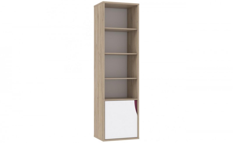 Regał z kolekcji NOVE w kolorze Dąb Bianko z charakterystycznymi listwami frontowmi w dwóch kolorach do wyboru, to oryginalny mebel, stworzony zgodnie ze współczesnymi trendami, który z pewnością spodoba się wymagającej młodzieży. Regał wyposażony jest w cztery półki oraz zamykaną komorę co ułatwia utrzymanie porządku.