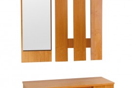Wysmienicie nadaje się do wyposażenia przedpokoju w każdym mieszkaniu. Zawiera dwie malutkie szafki, dwie szuflady np. na buty, dodatkowo do przedpokoju umieszczone są praktyczne wieszaki oraz duże lustro. Klient może sobie wybrać dowolny kolor płyty, dzięki czemu przedpokój będzie idealnie pasować do każdego wnętrza.