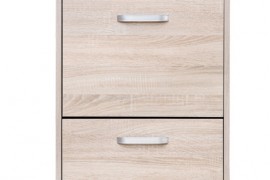 Praktyczna, wysoka szafka na buty 2 KLS56. Szafka ta wyposażona jest w dwie uchylne szafki i wąską szufladę na niezbędne drobiazgi. Tego typu mebel jest niezbędny w każdym przedpokoju, pozwala na uporządkowanie rzeczy i zachowanie ładu w pomieszczeniu, które jest wizytówką każdego domu.