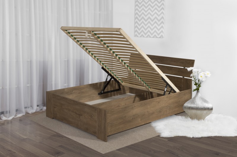 - Łóżko na zdjęciu zostało wykonane w kolorze Dąb Lefkas Ciemny R3226