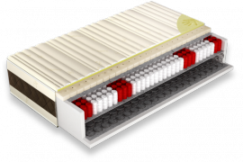 Połączenie niezwykłej sprężystości uzyskanej dzięki współpracy dwóch rodzajów sprężyn i niezależnej pracy samych sprężyn kieszeniowych to gwarancja zdrowych pleców i dużej dawki energii po każdej nocy przespanej na materacu Sergio. W dolnej jego warstwie wykorzystano tradycyjny, znany od pokoleń układ sprężyn bonellowych, na niej ułożono formatkę sprężyn kieszeniowych o 7 strefach twardości. Po obu stronach oraz pomiędzy zastosowano przekładki chroniące konstrukcję przed uszkodzeniami.