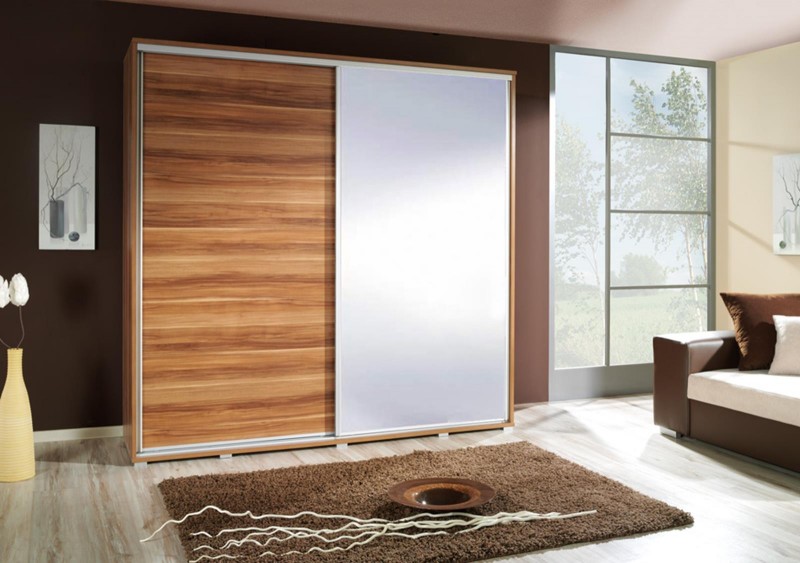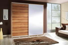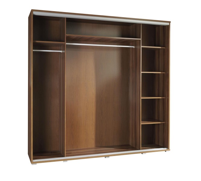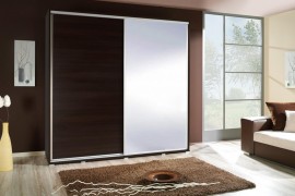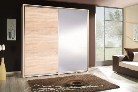 Szafa Penelopa z drzwiami przesuwnymi.Fronty i boki wykonane są z płyty wiórowej laminowanej o grubości 16mm charakteryzują się dużą wytrzymałością i atrakcyjnym wyglądem oraz starannym wykonaniem.