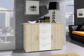Komoda Vera, która należy do marki Helvetia Wieruszów jest funkcjonalnym uzupełnieniem wnętrza sypialni z kolekcją Vera. Inspiracją do jej wykonania był nowoczesny styl i modny minimalizm. Komoda Vera posiada 2-drzwiowy front oraz cztery szuflady, dlatego zapewni Ci mnóstwo miejsca do przechowywania i uporządkowania wybranych przez Ciebie rzeczy. Zastosowanie długich, ergonomicznych uchwytów pozwoli Ci wygodnie użytkować mebel na co dzień. Samodzielnie wykreujesz ostateczny wygląd komody Vera, ponieważ masz do dyspozycji kilka modnych połączeń kolorystycznych, które wybierzesz w zależności od własnego gustu i stylu.